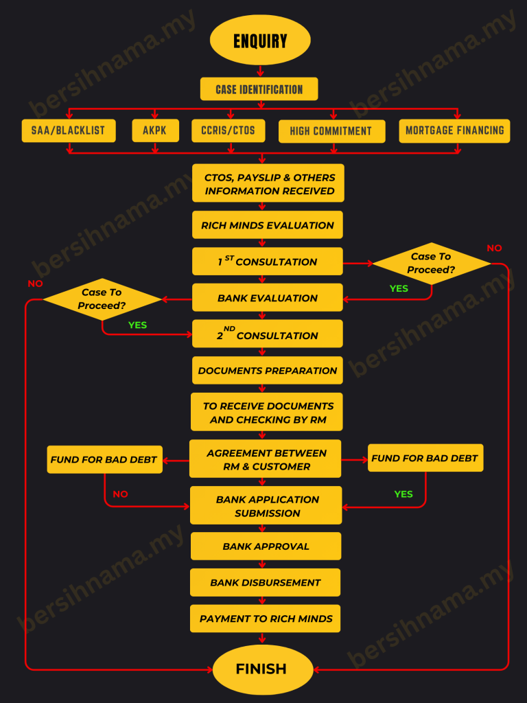 Syarikat Rich Minds Wealth Management (M) Sdn Bhd secara khususnya ditubuhkan sebagai sebuah Syarikat Perunding untuk menyelesaikan masalah “bad record” CCRIS, CTOS, AKPK, “Blacklist” dan/atau Komitmen Bulanan yang Tinggi.